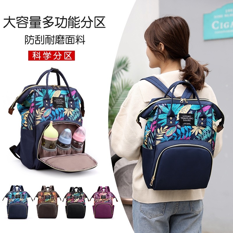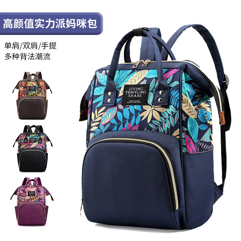 批发印制多功能母婴包大容量奶瓶尿布旅行背包时尚潮流双肩妈咪包