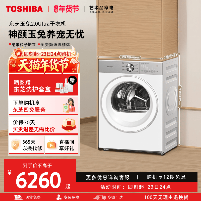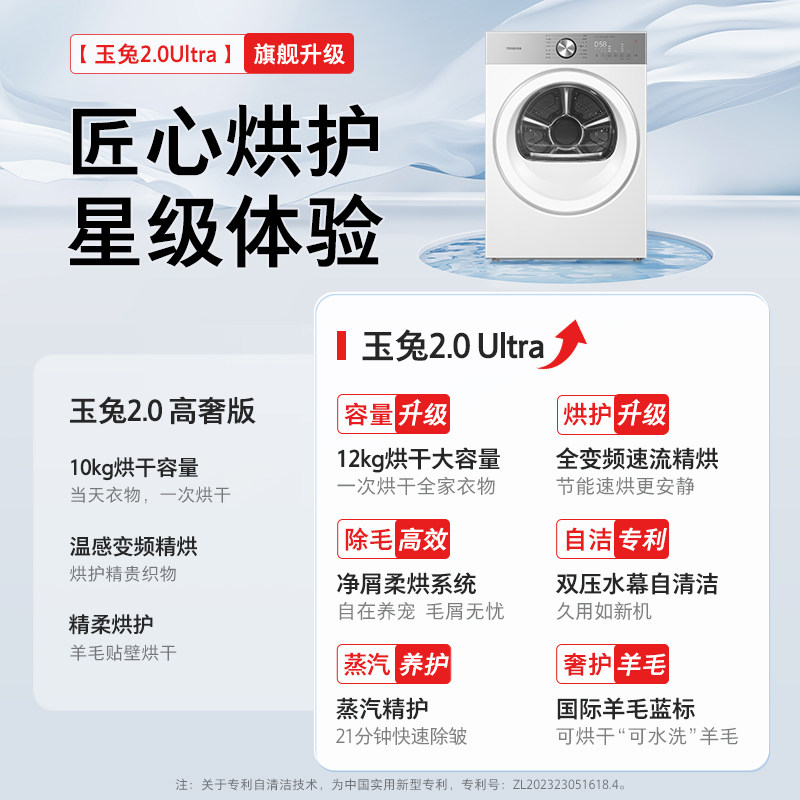 版权保护: 转载本文请保留链接: 东芝玉兔2.0Ultra烘干机12KG热泵式纯平大容量家用全变频干衣机