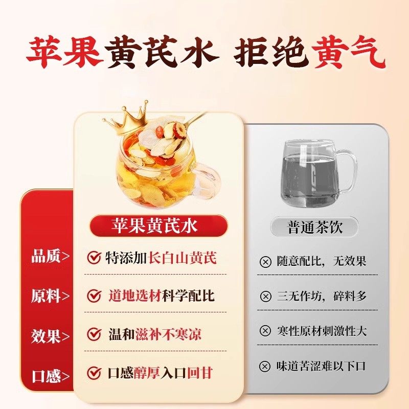 苹果黄芪水甄选黄芪枸杞秋冬暖身养颜拒接黄气黄芪苹果补气养血茶