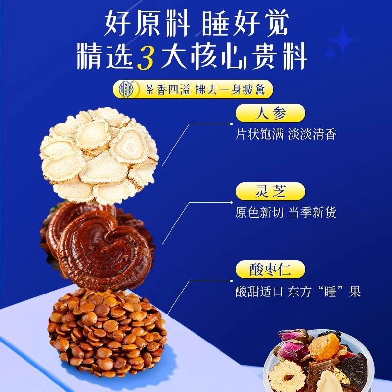 版权保护: 转载本文请保留链接: 北京同仁堂内廷上用酸枣仁百合茯苓茶人参灵芝睡眠质量差助多梦眠