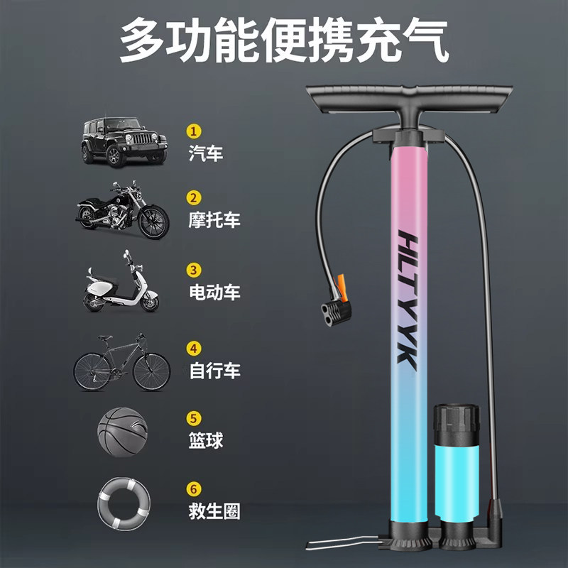自行车打气筒家用通用电动电瓶车便携汽车高压充气泵篮球气管