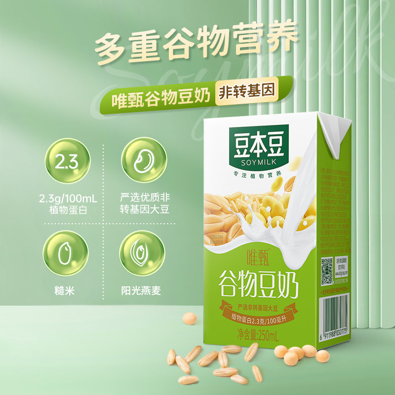 版权保护: 转载本文请保留链接: 豆本豆唯甄豆奶250ml*24盒营养早餐奶0反式饮料原味燕麦植物红枣