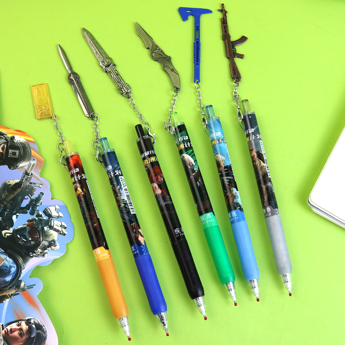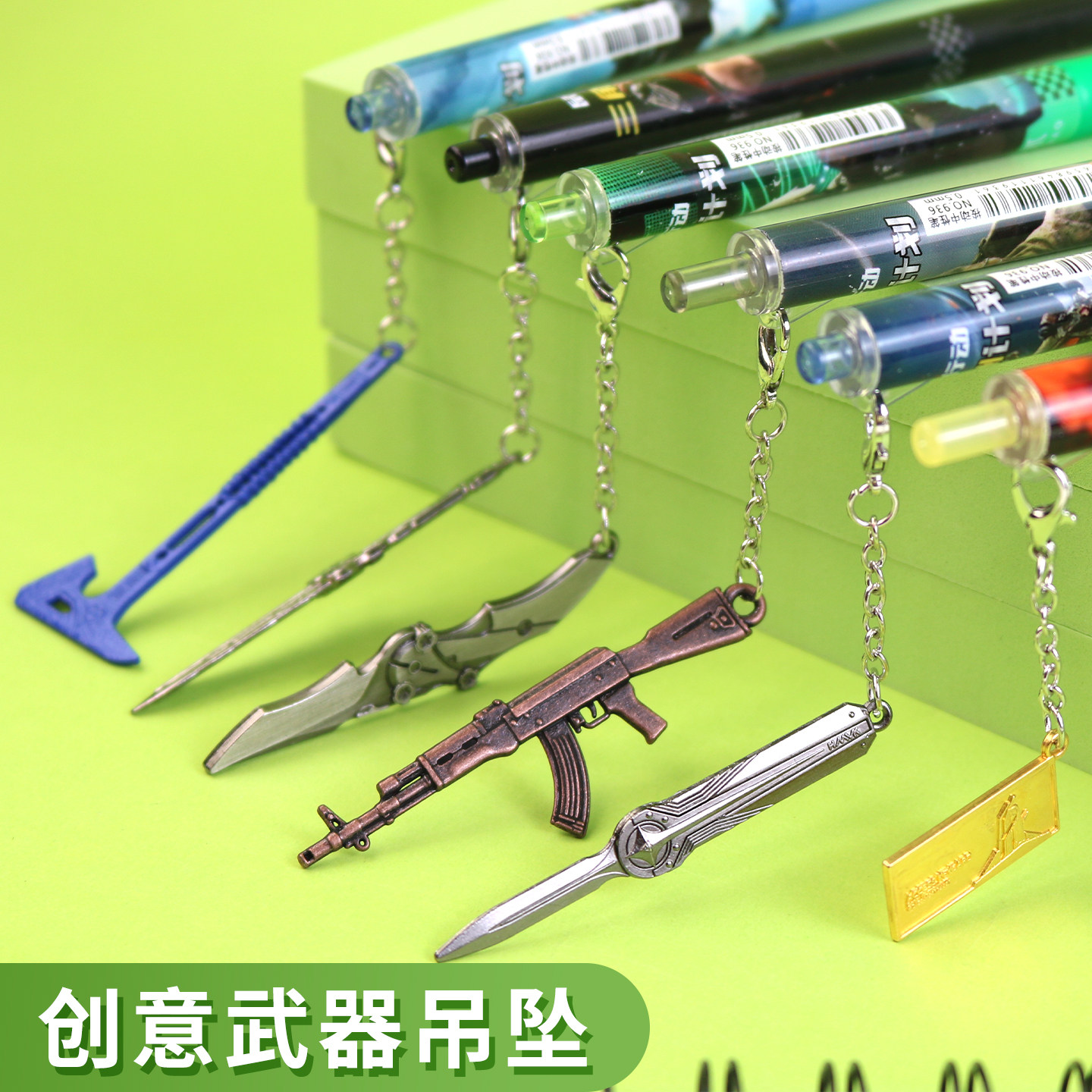 三角洲行动按动笔联名限定款金属兵器吊坠中性笔速干0.5mm黑色笔