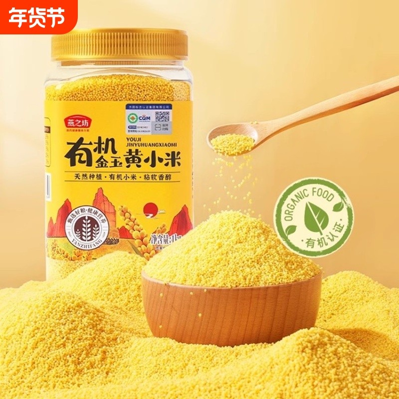 版权保护: 转载本文请保留链接: 燕之坊有机金玉黄小米1kg罐装养胃杂粮新米优质小黄米脂粗粮
