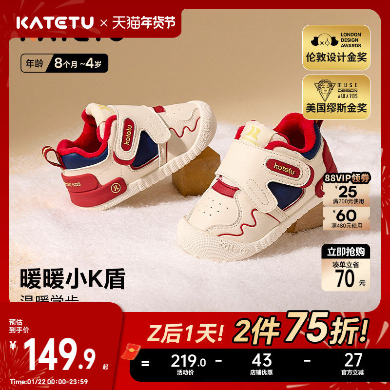 卡特兔小K盾鞋子秋冬女童宝宝机能童鞋婴儿软底男童儿童学步鞋