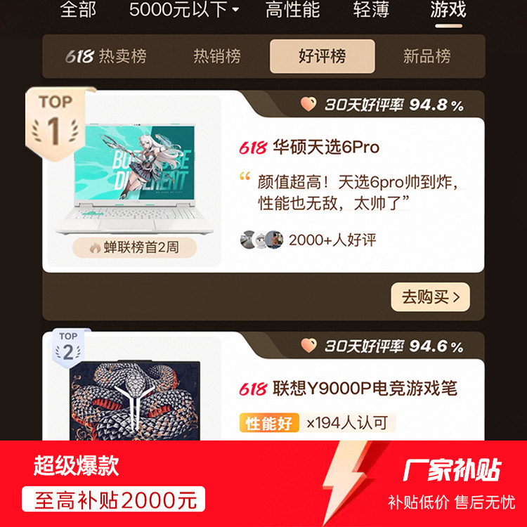 版权保护: 转载本文请保留链接: 【品牌补贴20%】华硕天选6pro锐龙版游戏笔记本电脑以旧换新补贴