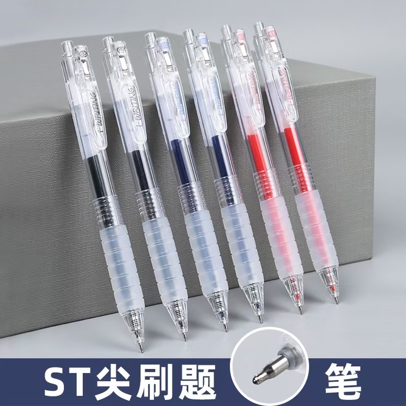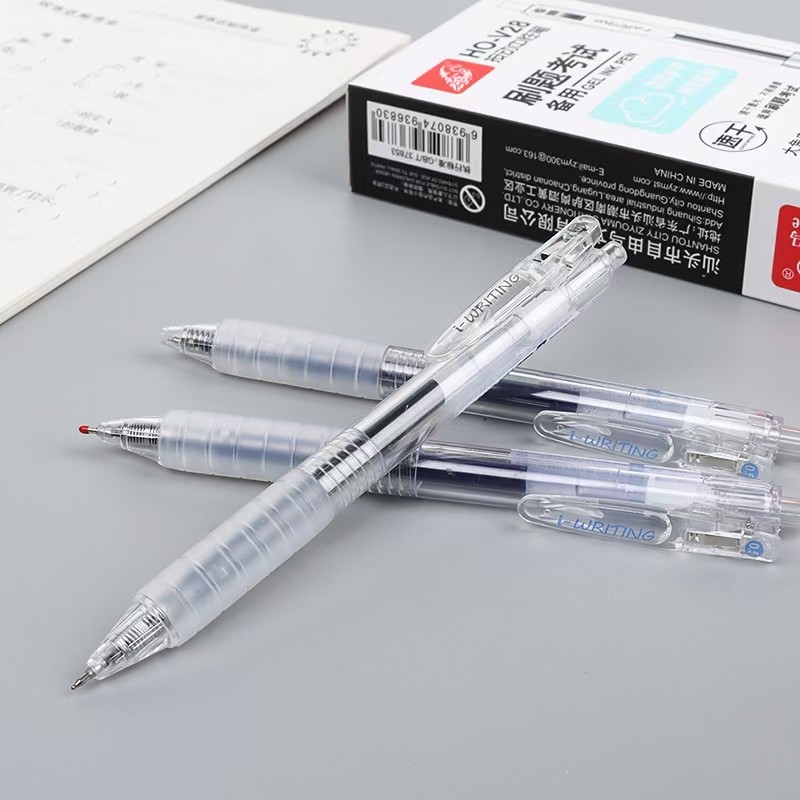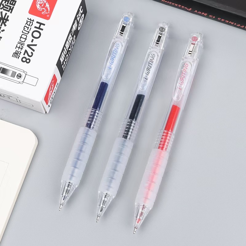 V28水笔透明办公用品中性学生签字笔碳素黑色包邮按动0.5mm12支装