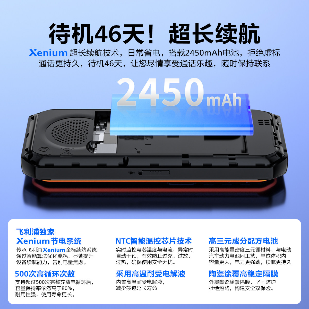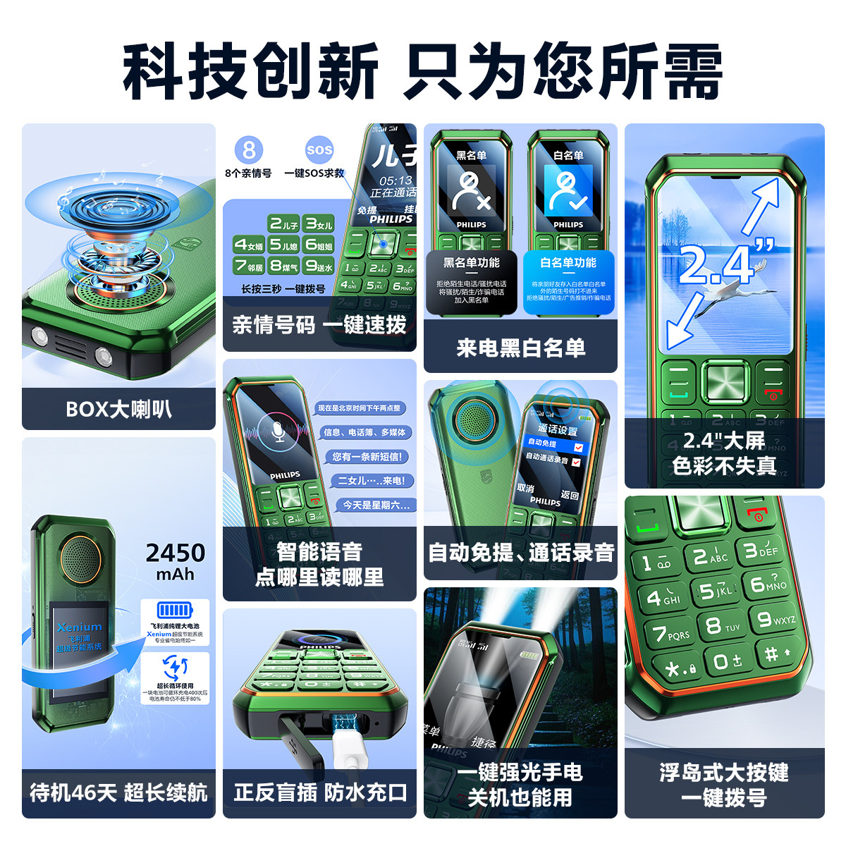 [官方旗舰店]飞利浦新款正品4G全网通三防老人手机超长待机电信版老年机大屏大字大声音学生防摔按键机