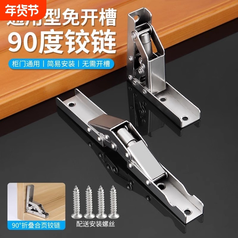 版权保护: 转载本文请保留链接: 90度免开槽长条铰链 橱柜门台面支撑五金 上翻门简易安装折叠合页
