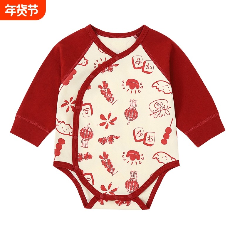 版权保护: 转载本文请保留链接: 婴儿衣服春节拜年服宝宝周岁百天满月服长袖三角爬包屁衣母婴春秋