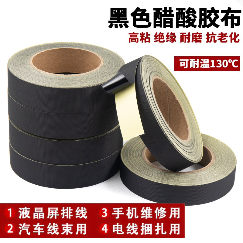 版权保护: 转载本文请保留链接: 黑色醋酸胶带 电线数据排线固定 尼龙胶布 耐高温绝缘胶布 液晶屏汽车线束固定束线胶带30码长包邮
