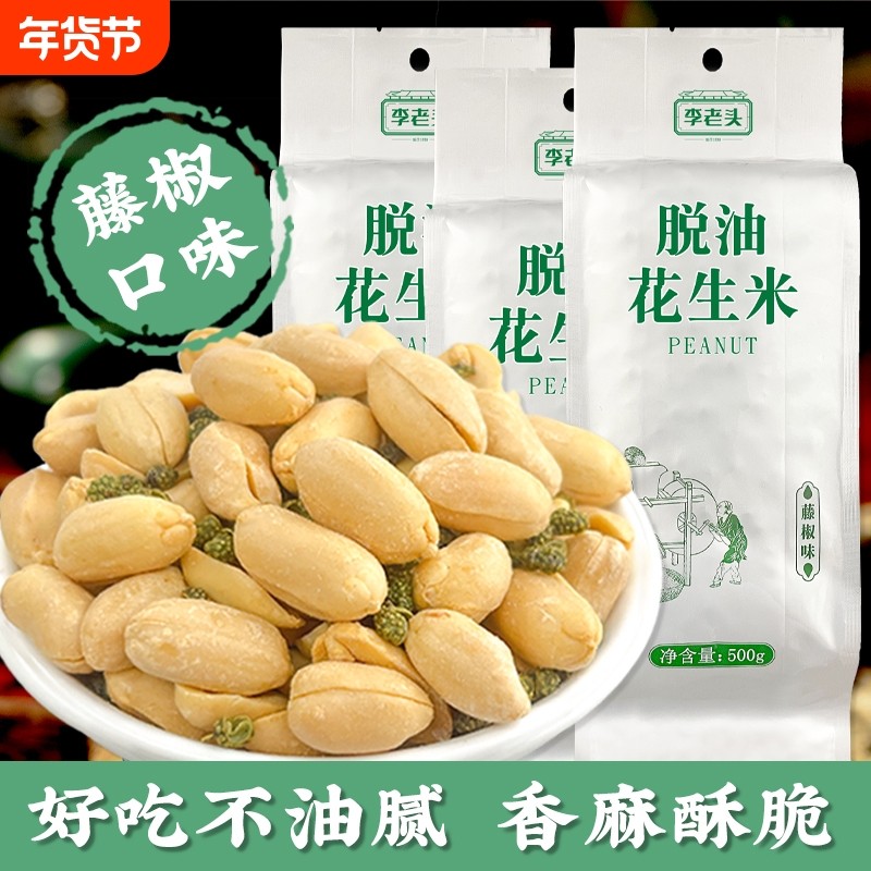 版权保护: 转载本文请保留链接: 李老头脱油花生米500g藤椒麻辣五香味花生下酒菜小吃零食去壳油炸