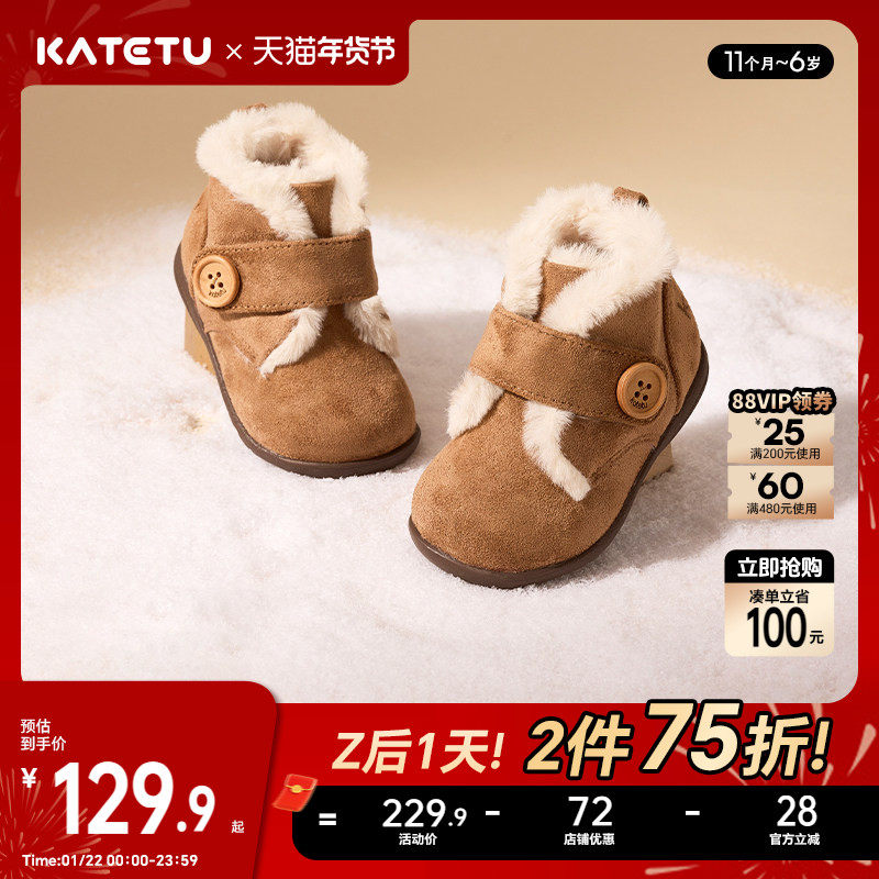 卡特兔宝宝棉鞋加绒冬季女童学步鞋毛毛鞋儿童雪地靴机能鞋童鞋