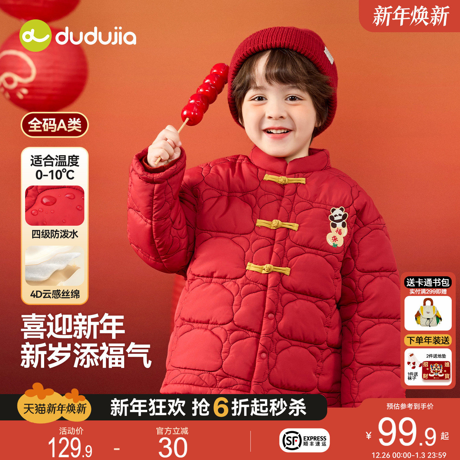嘟嘟家男童唐装棉服冬季儿童新年装棉衣女童拜年服棉袄加厚外套冬