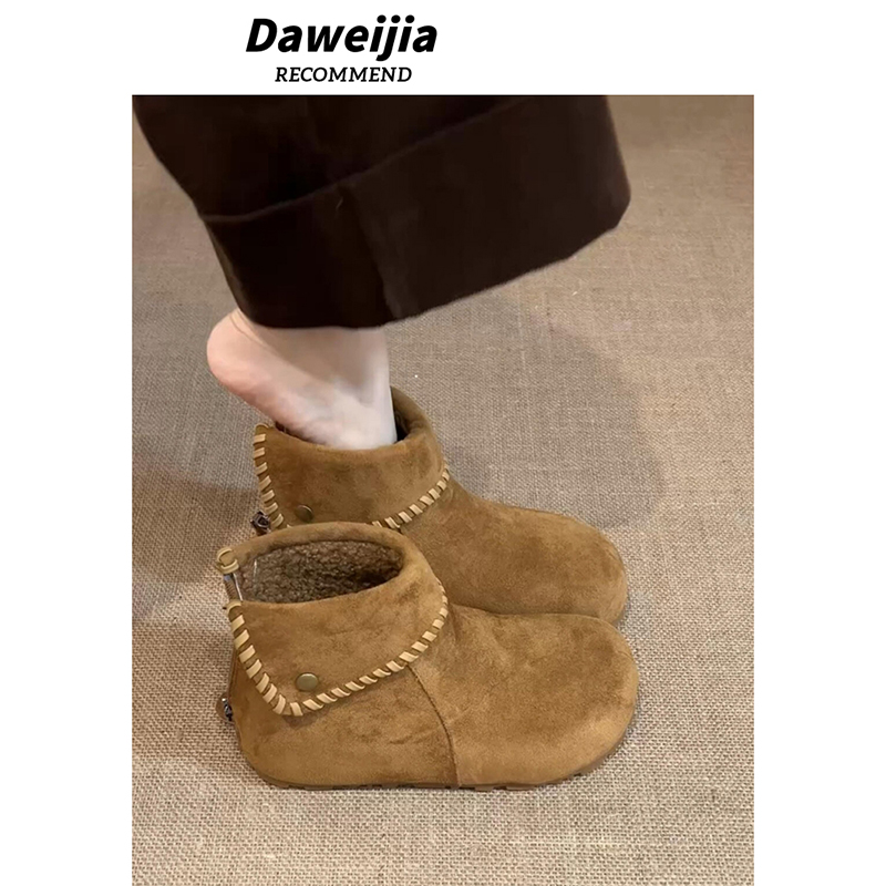 低帮厚底雪地靴女2025新款冬季懒人一脚蹬毛毛棉鞋加绒加厚女鞋子