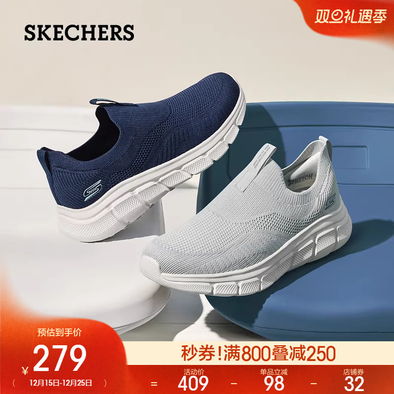 斯凯奇男鞋秋冬黑色休闲运动鞋网面一脚蹬软底舒适健步鞋缓震