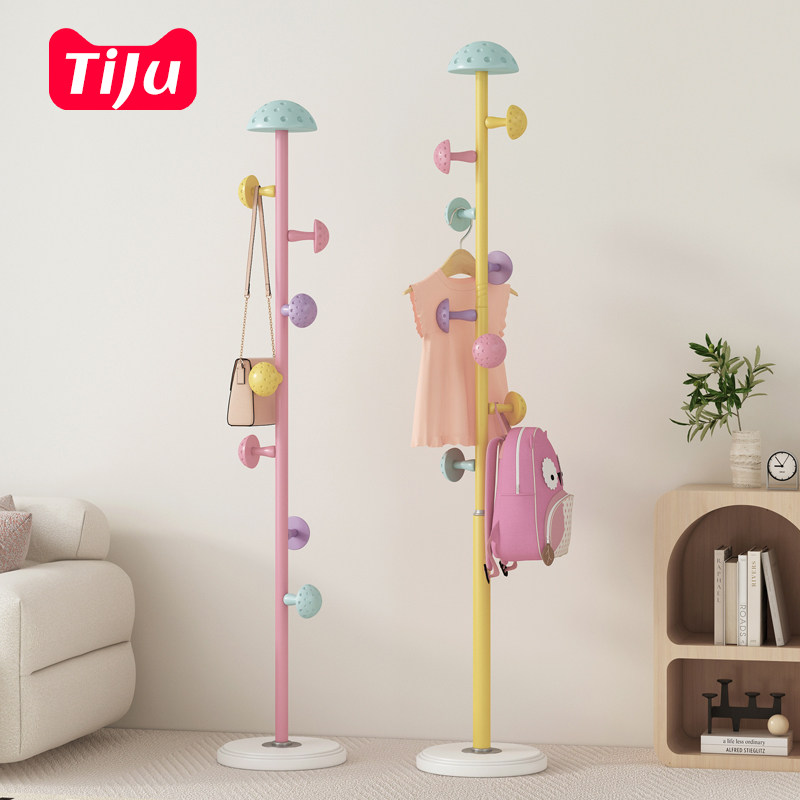 儿童衣架落地卧室蘑菇挂衣架客厅家用多巴胺衣帽架小空间挂包支架