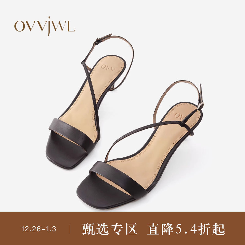 【孙俪同款】OVV春夏新款女装时尚小羊皮细高跟一字带凉鞋