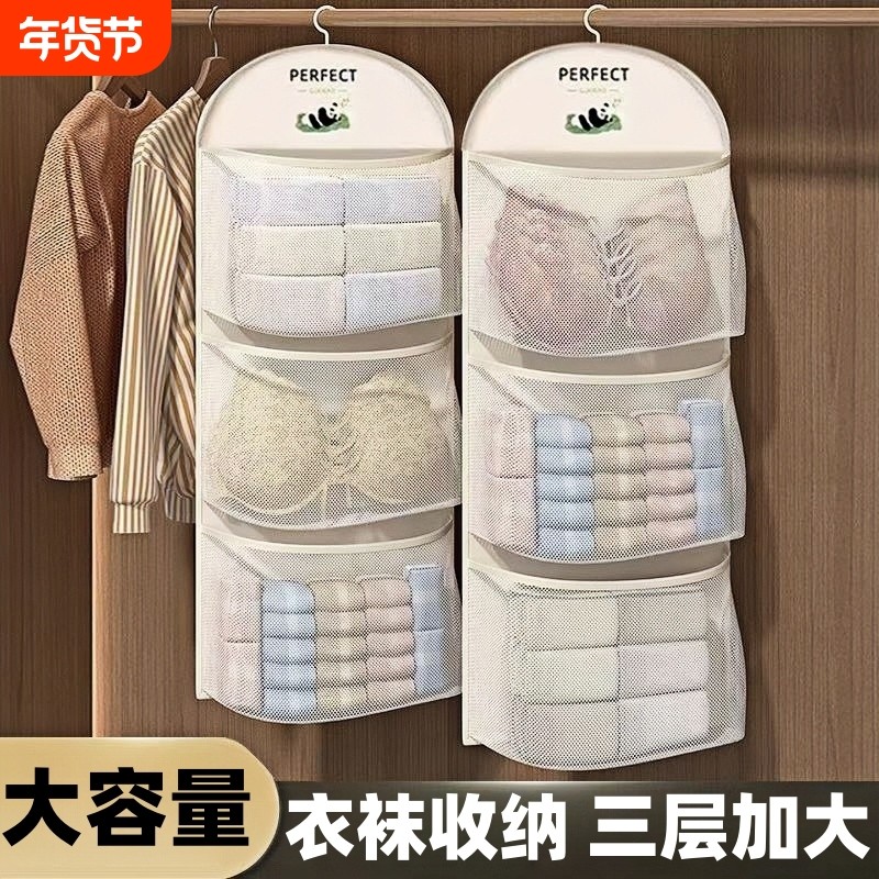 大容量收纳网袜子收纳神器宿舍衣柜内衣内裤挂袋悬挂式网兜门收纳