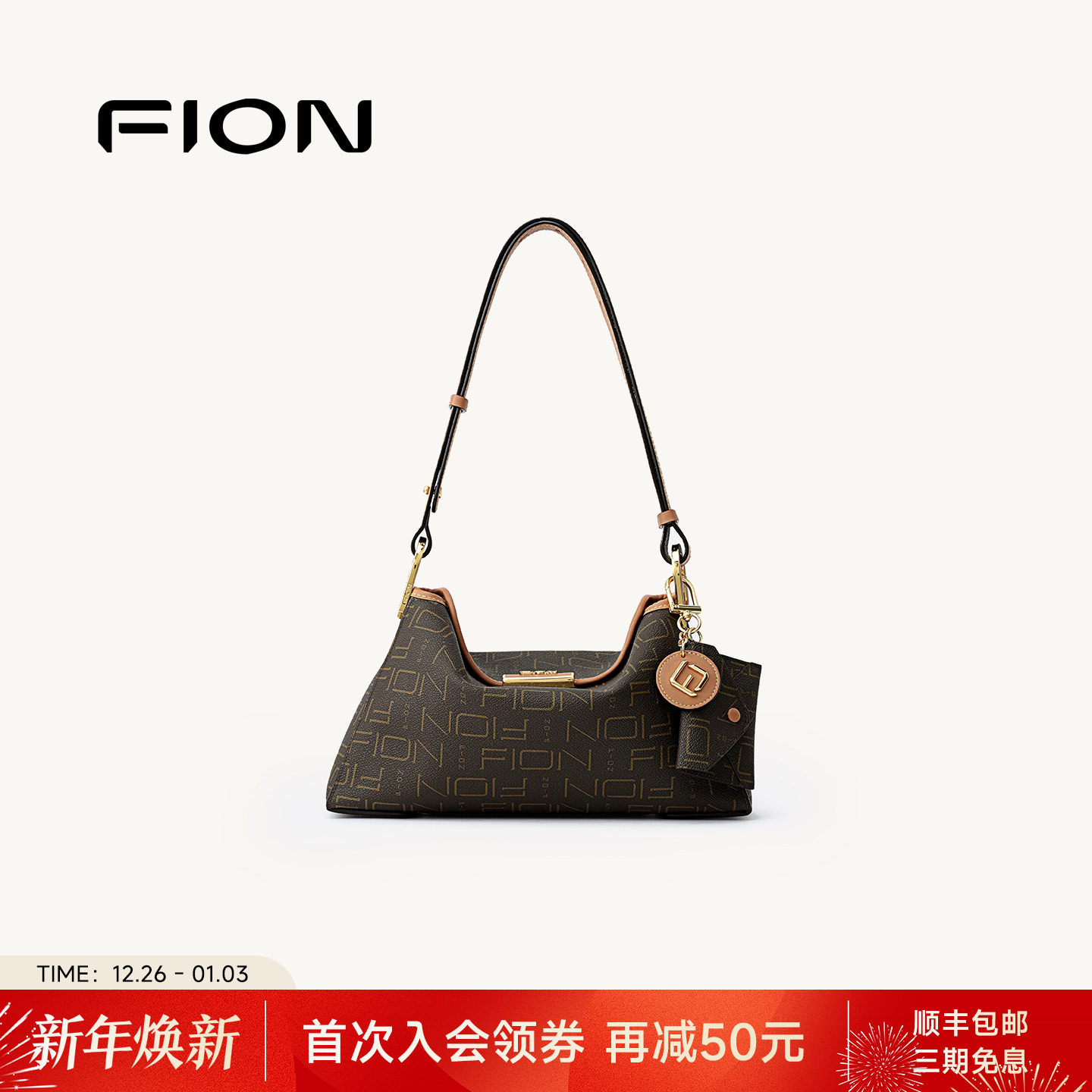 Fion/菲安妮女包复古老花腋下包通勤休闲包新款单肩斜挎小方包包