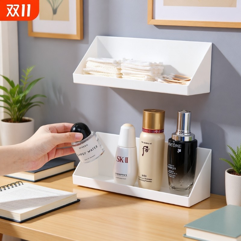 镜柜斜口收纳盒口红化妆品置物架卫生间免打孔分层分类壁挂整理盒