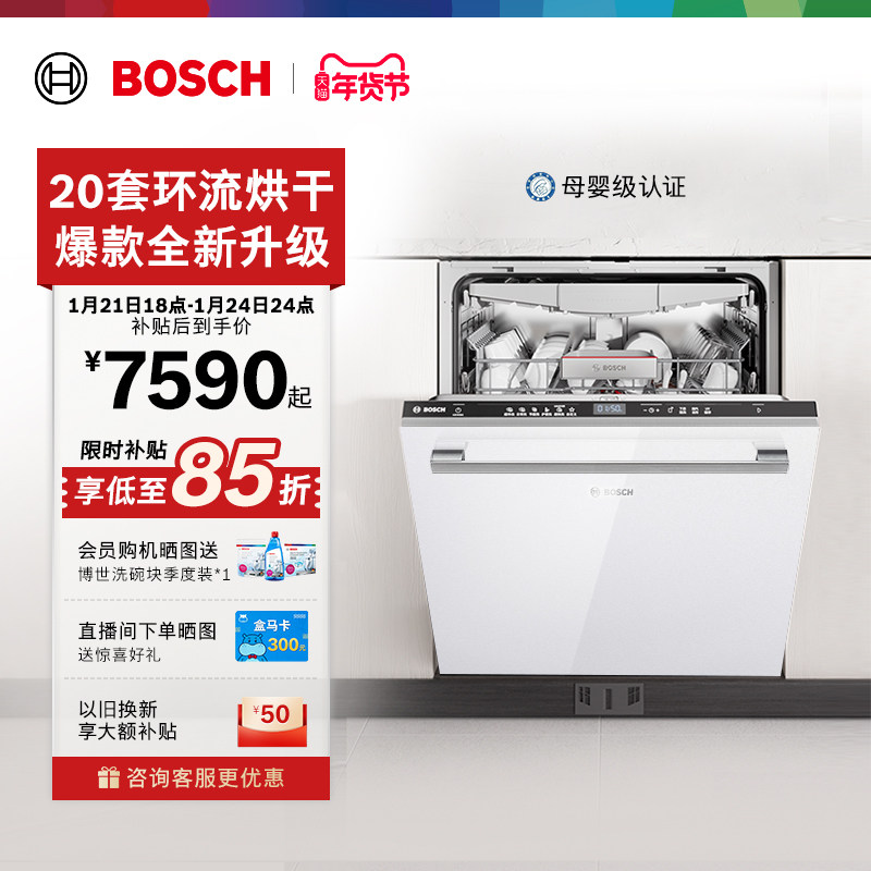 【重磅新品】博世20套洗碗机V10Pro环流嵌入式全自动家用洗碗机