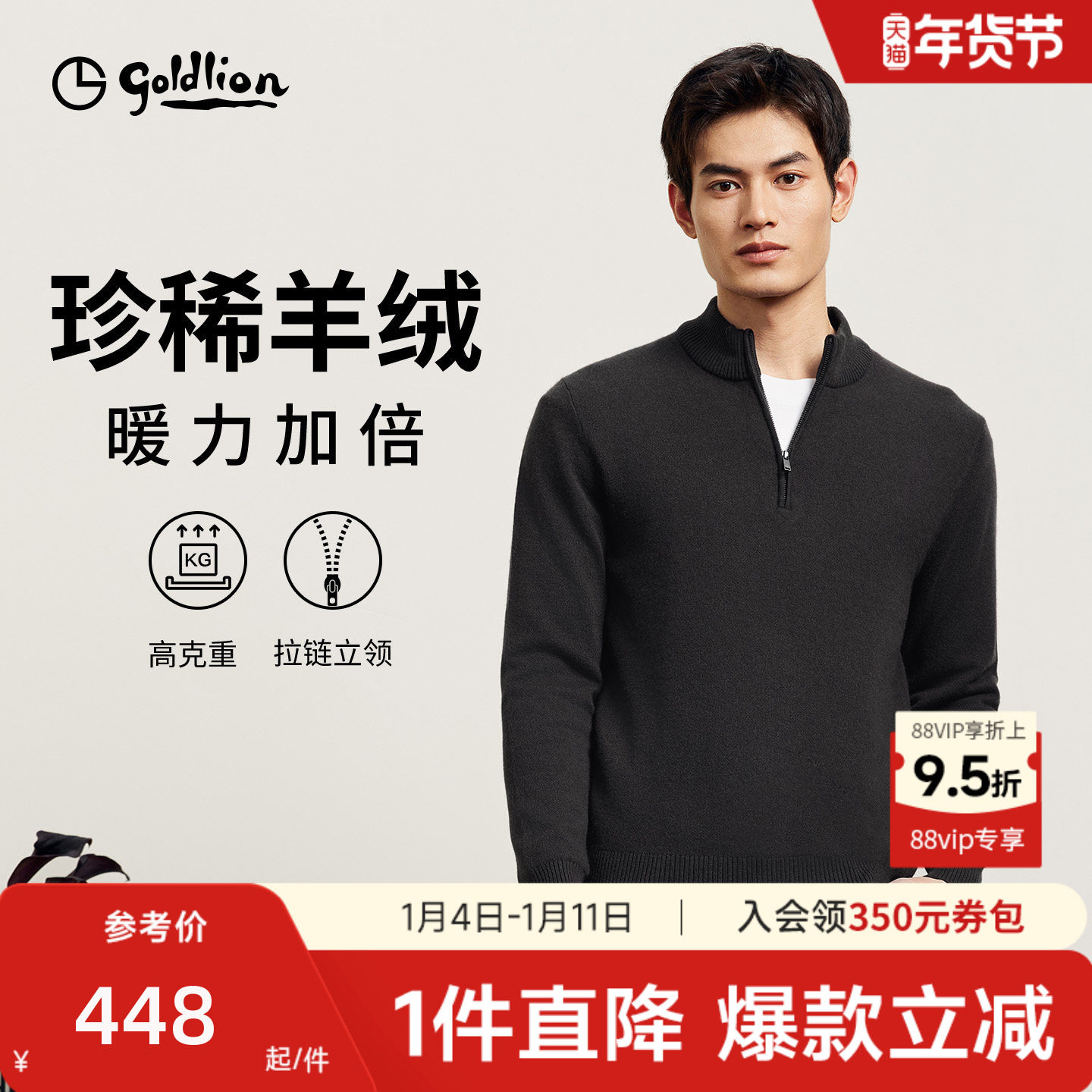 【半高领羊绒衫】金利来秋冬新款毛衣男士拉链立领休闲羊毛针织衫