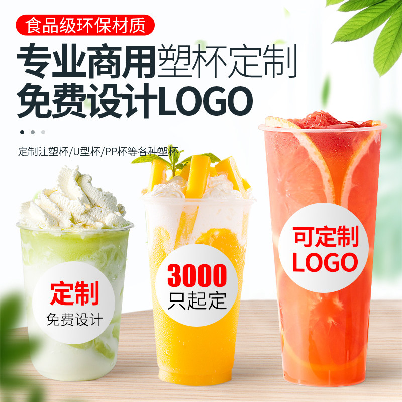 定制一次性奶茶塑料杯u型杯子果汁商用豆杯注塑饮料杯定制印logo
