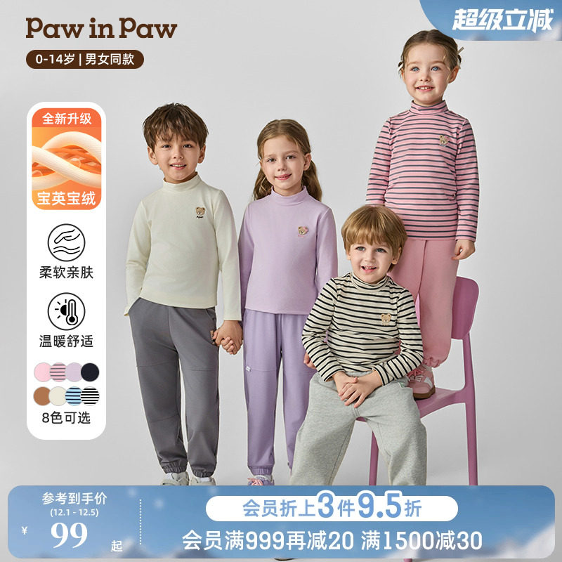 【宝英宝绒】PawinPaw卡通小熊童装25年秋冬新款男女童打底衫T恤