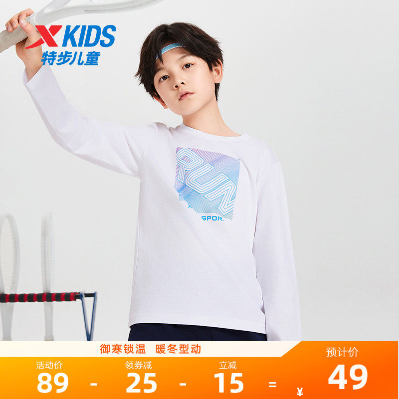 特步童装男童长袖T恤2025秋冬新款儿童纯棉上衣中大童打底衫秋装