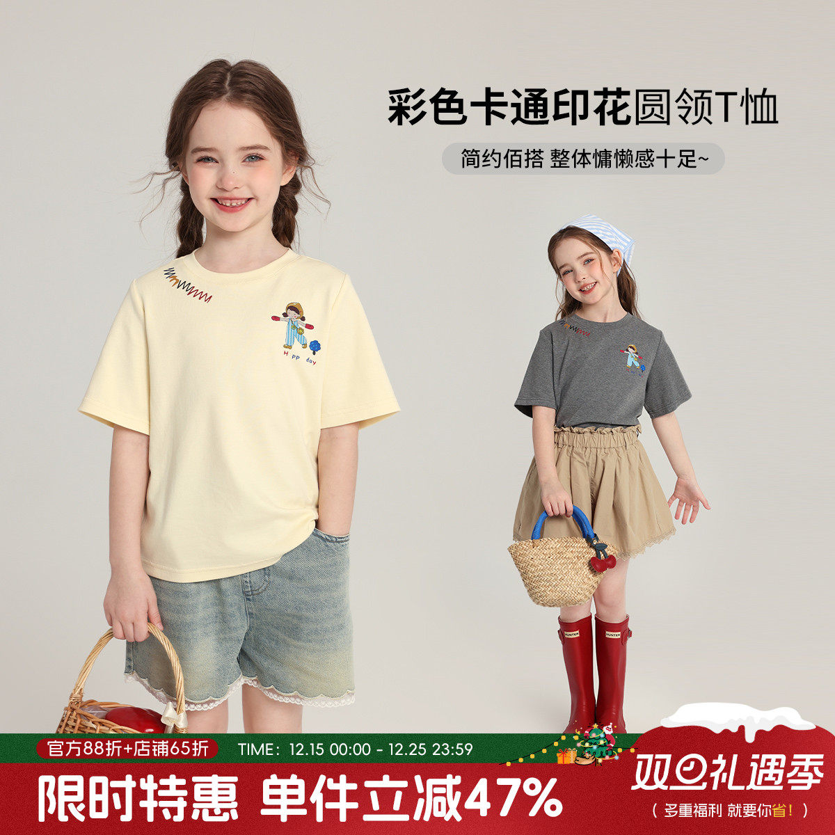 布丁哈鲁童装夏装女童洋气短袖2025夏季新款儿童百搭卡通印花T恤