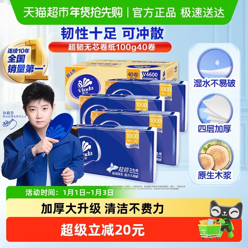 【孙颖莎推荐】维达超韧无芯卷纸纸巾卫生纸家用实惠整箱装