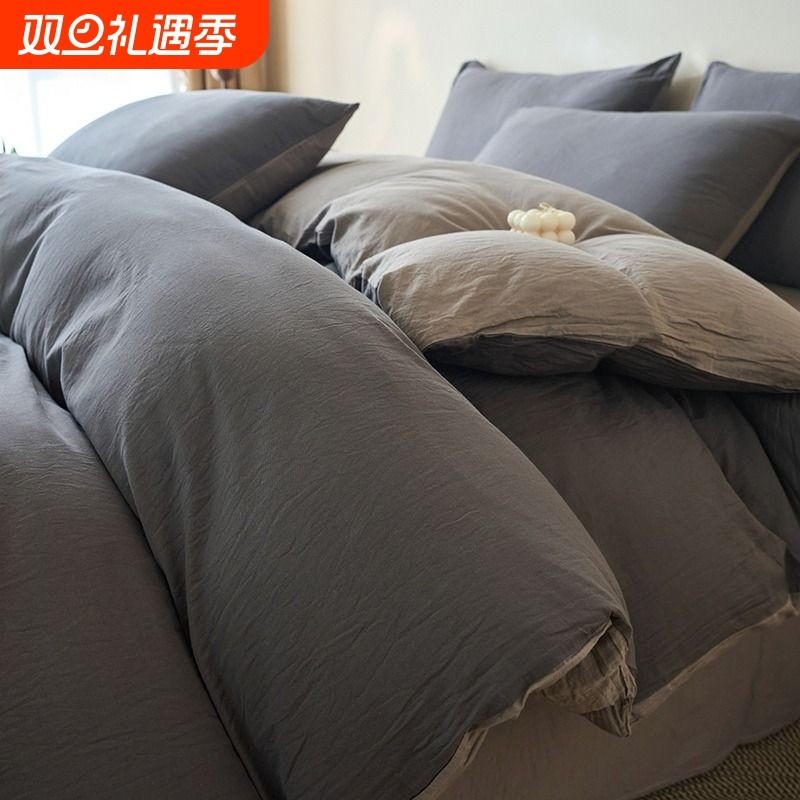 A类水洗棉双层纱四件套被罩非全棉纯棉床单人学生宿舍被套三件套