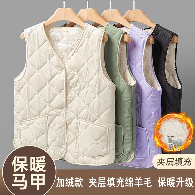 妈妈装秋冬季保暖马甲中老年女新款加绒加厚背心奶奶羊毛内胆开衫