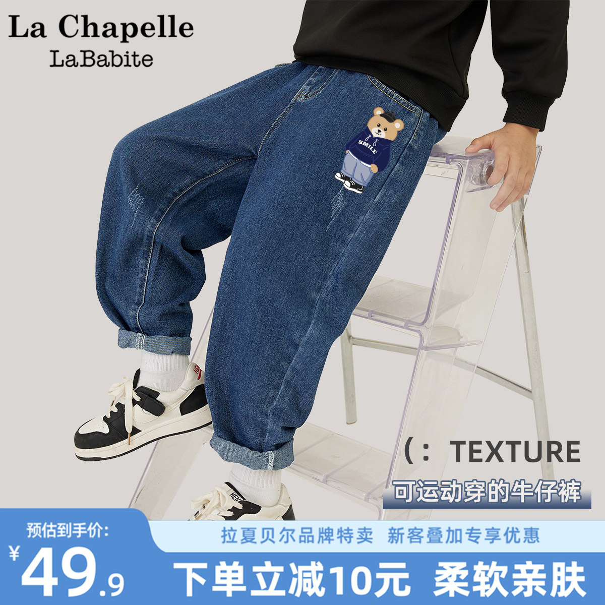 拉夏贝尔男童牛仔裤春秋2025新款童装潮酷中大童秋装宽松儿童裤子