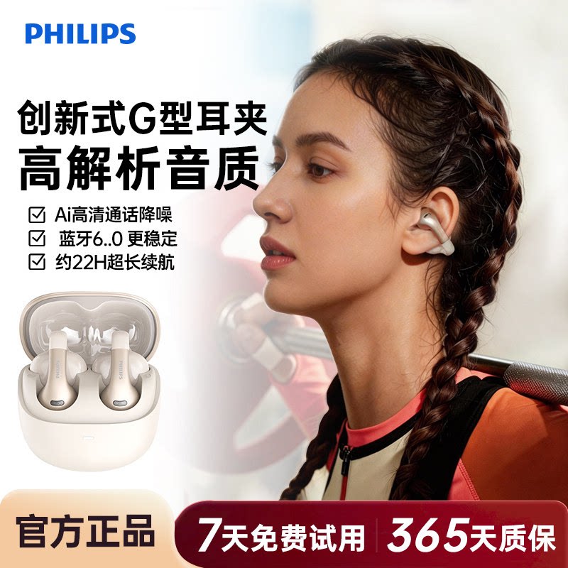 飞利浦新款开放夹耳式蓝牙耳机佩戴舒适无线不入耳运动跑步长续航