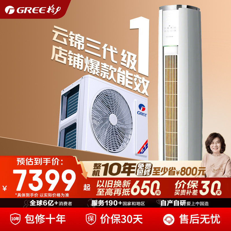 【官方自营】格力空调3匹云锦三代一级能效变频冷暖立式柜机109