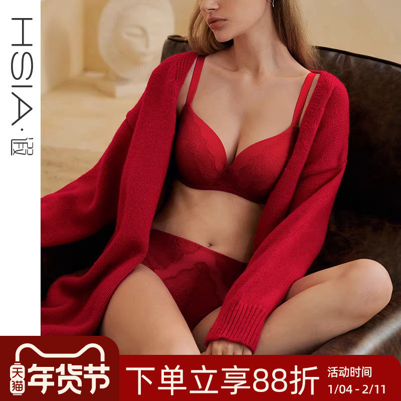 【花开圆满】遐本命年马年红色内衣女青提杯微聚拢大胸显小文胸