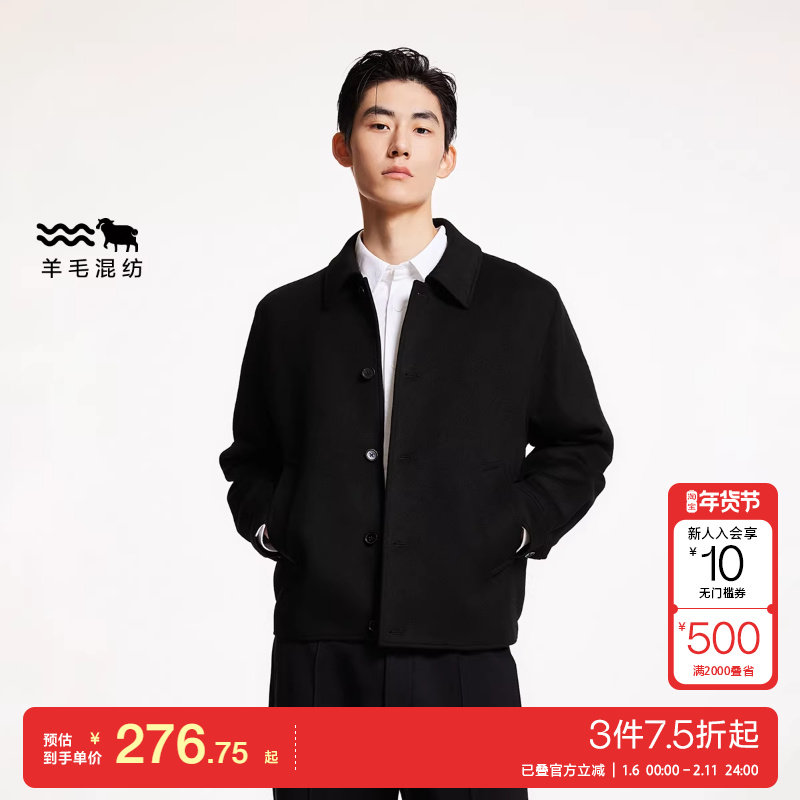 jq区绫致杰克琼斯24秋冬休闲舒适多色外套翻领直筒毛呢大衣男百搭