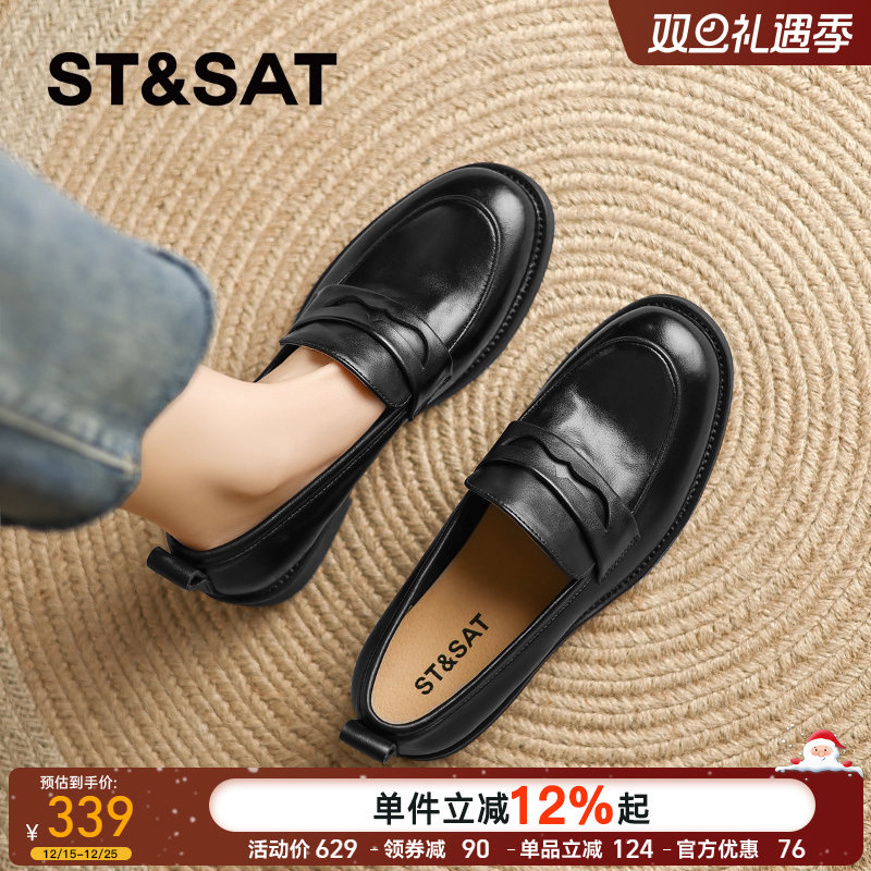 星期六真皮软底乐福鞋女鞋2025春夏新款英伦一脚蹬厚底小皮鞋通勤
