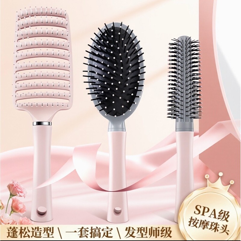 蓬松气垫梳长发梳套装组合气囊直发梳子学生宿舍女家用卷发按摩梳