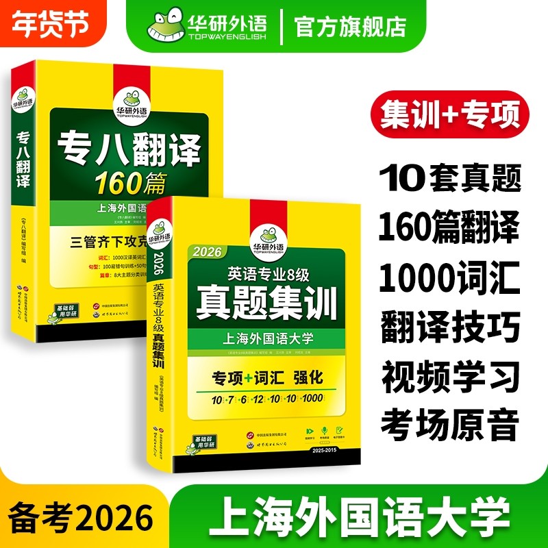 华研外语英语专八真题集训专八翻译备考2026英语专业八级历年真题考试卷翻译160篇tem8级资料听力翻译阅读理解词汇写作文专项训练