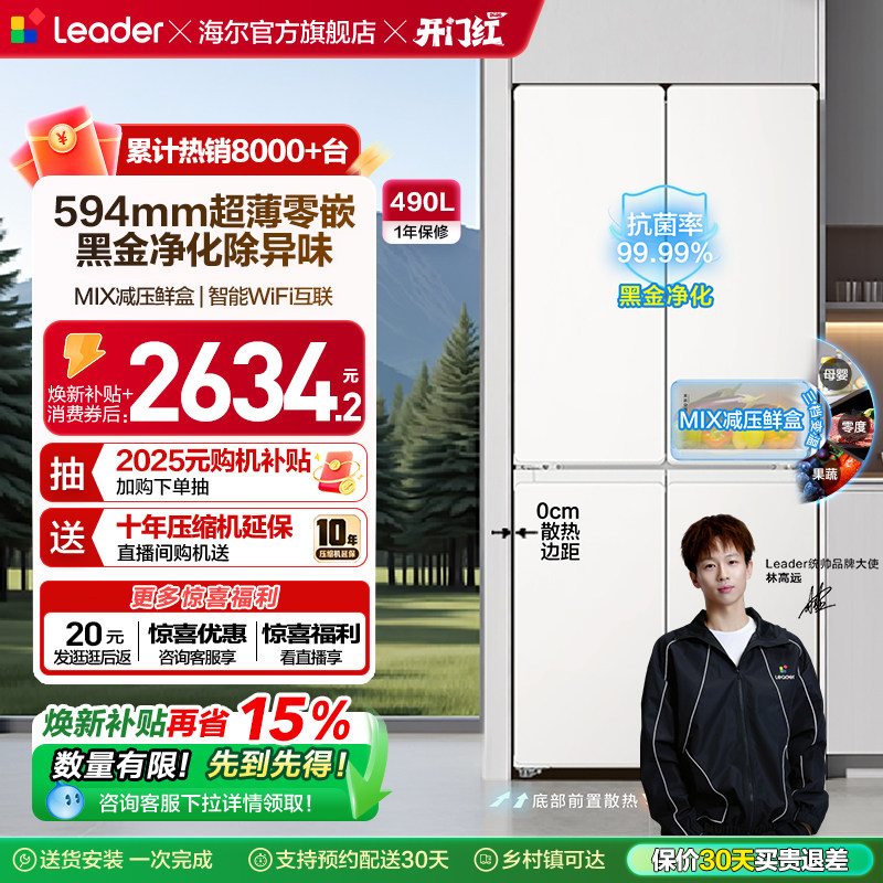 政府补贴超薄零嵌海尔统帅悦己懒人520十字对开四门大容量电冰箱