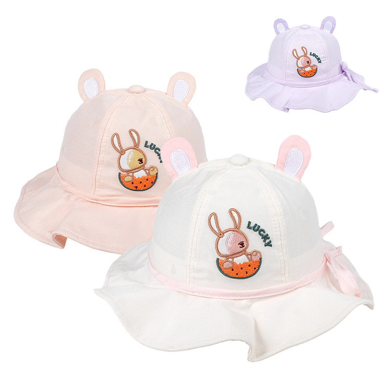 可爱小兔儿童渔夫帽女宝宝遮阳帽幼儿园童帽公主盆帽春秋季薄防晒
