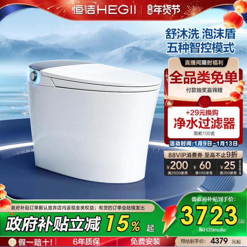 【政府补贴】恒洁智能马桶一体式家用小户型泡沫盾翻盖H35M