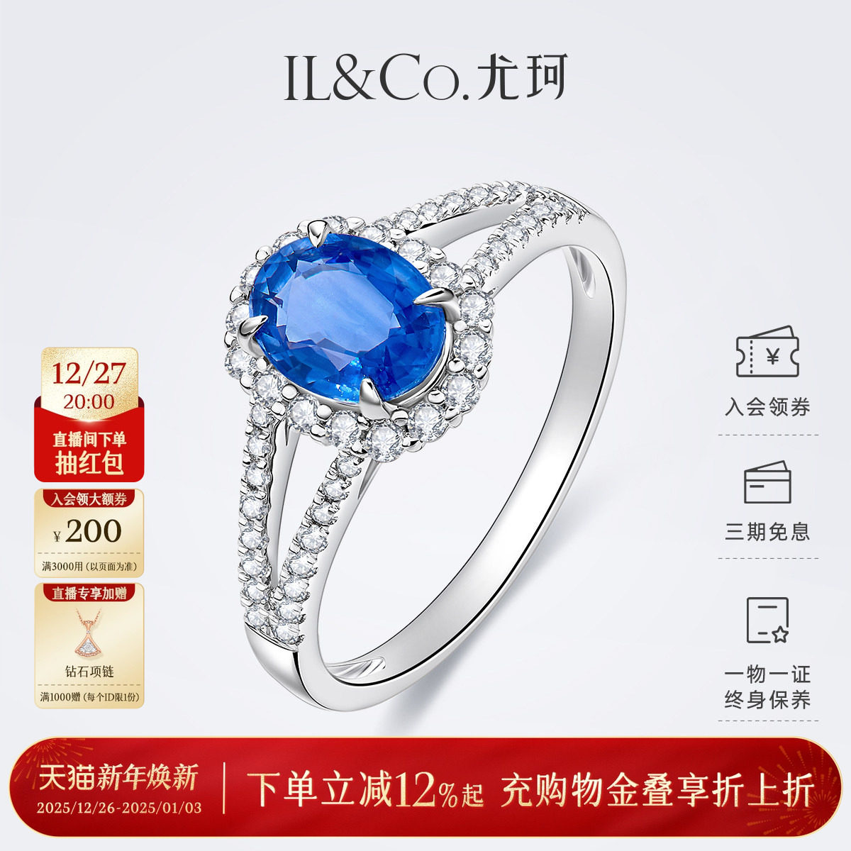 ILCO尤珂「星桥之约」天然蓝宝石戒指白18k金镶嵌真钻石彩宝女戒