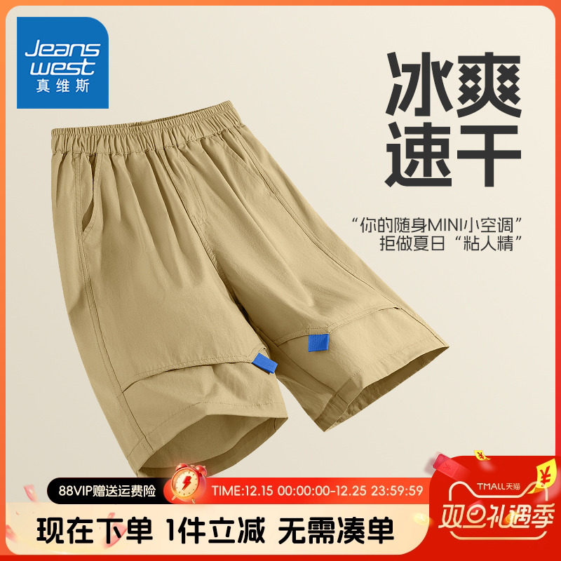 真维斯童装男童裤子男大童夏季凉感五分裤儿童速干冰丝工装短裤薄