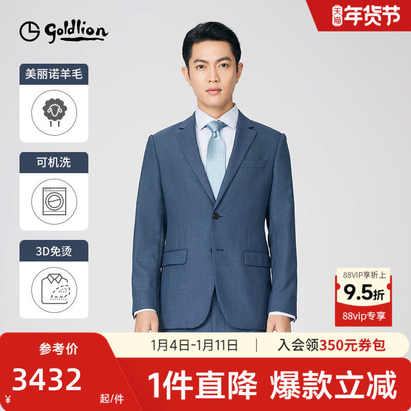 【商场同款】金利来秋冬男士可机洗羊毛免烫修身花纱商务正装西服