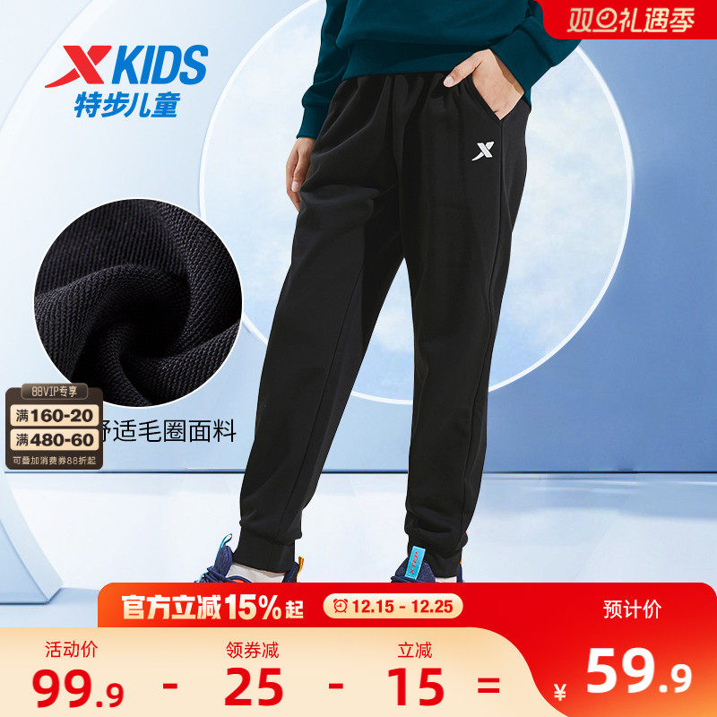 特步儿童童装男童裤子大童2025年秋冬新款卫裤长裤运动裤加绒冬装