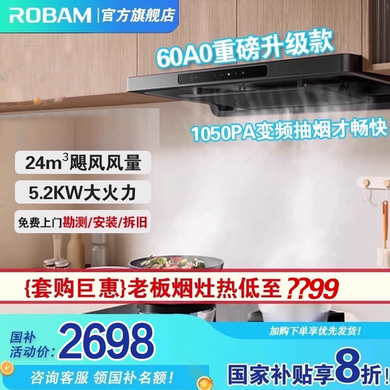 老板【60A0升级款】星辰F30变频大吸力家用厨房油烟机烟灶套装